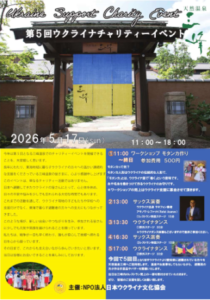 ここでは、日本ウクライナ文化協会か関わるイベント活動、スクール、支援活動などのお知らせを掲載します。